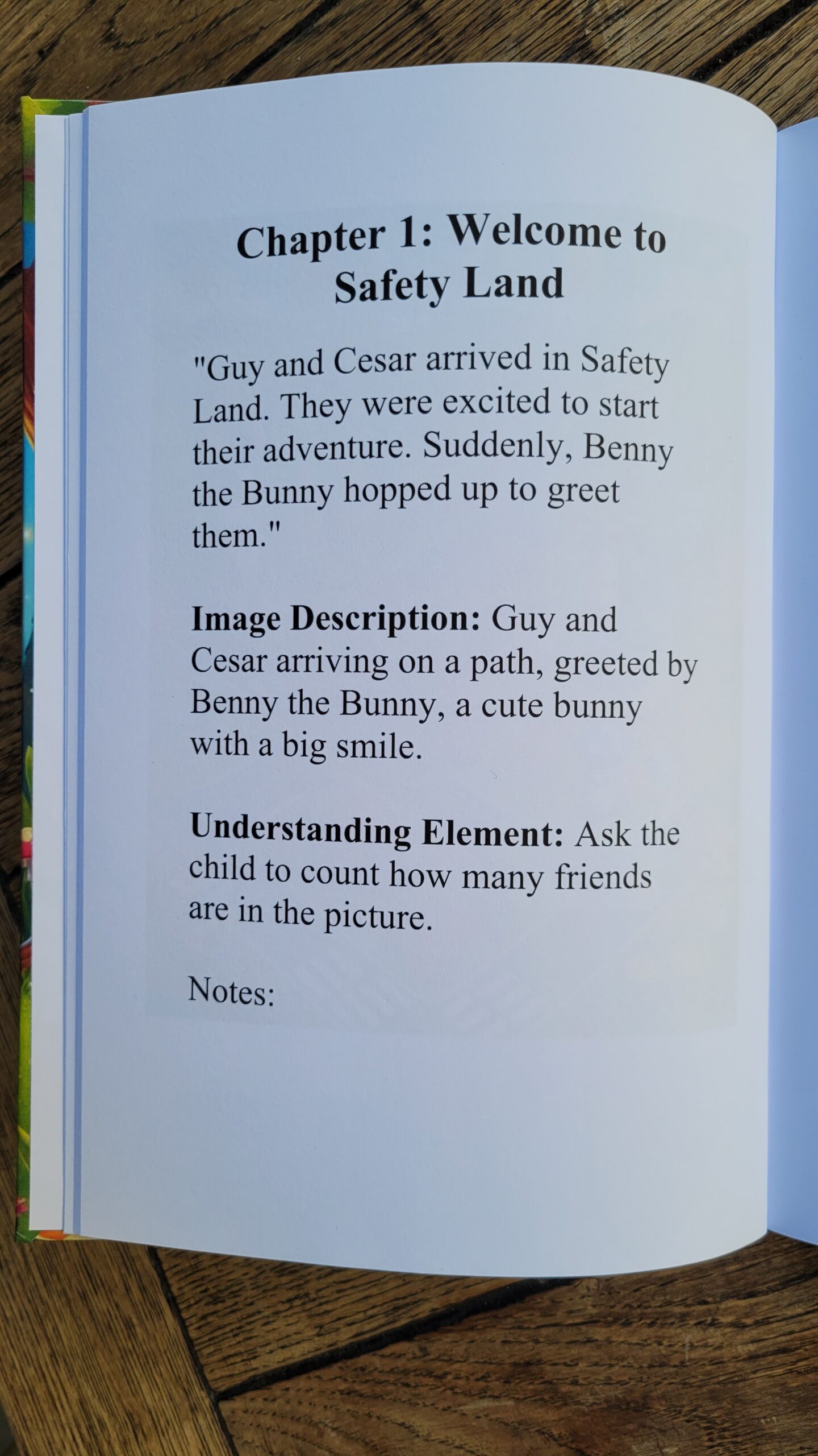 In Guy & Cesar’s Big Adventure in Safety Land, the hidden subject is Stranger Danger. Only the trusted adult knows this underlying theme, using the Reader’s Toolkit to gently guide discussions, reinforce awareness, and help children understand how to recognize and respond to unsafe situations.